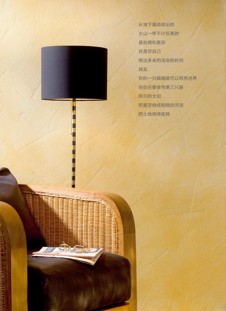 This product is outstanding elastic sheet capacity can be scrubbed waterborne paint decorative arts. Environmental protection products, non-toxic, odorless, containing a metallic pigment, offers elegant gold, silver color change effect. Gold and silver paint available two basic Italian toscano "world of color" color system of any color. This product is suitable for modern home decoration or high-grade entertainment, dining. Elegant shiny color, highlighting special artistic beauty.