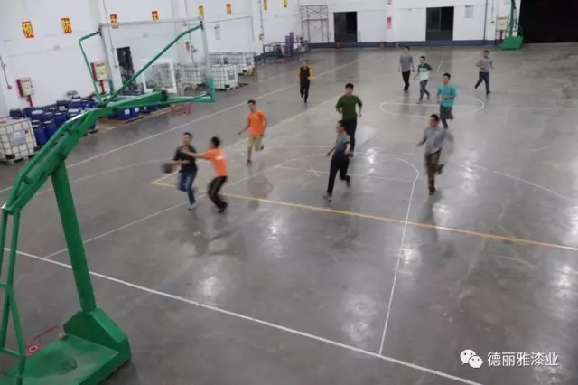 天公不作美下起了雨,也難不倒聰明的小伙伴們。倉庫里,用膠布貼出場地,臨時搭建規劃的籃球場,也別具一番歡樂。